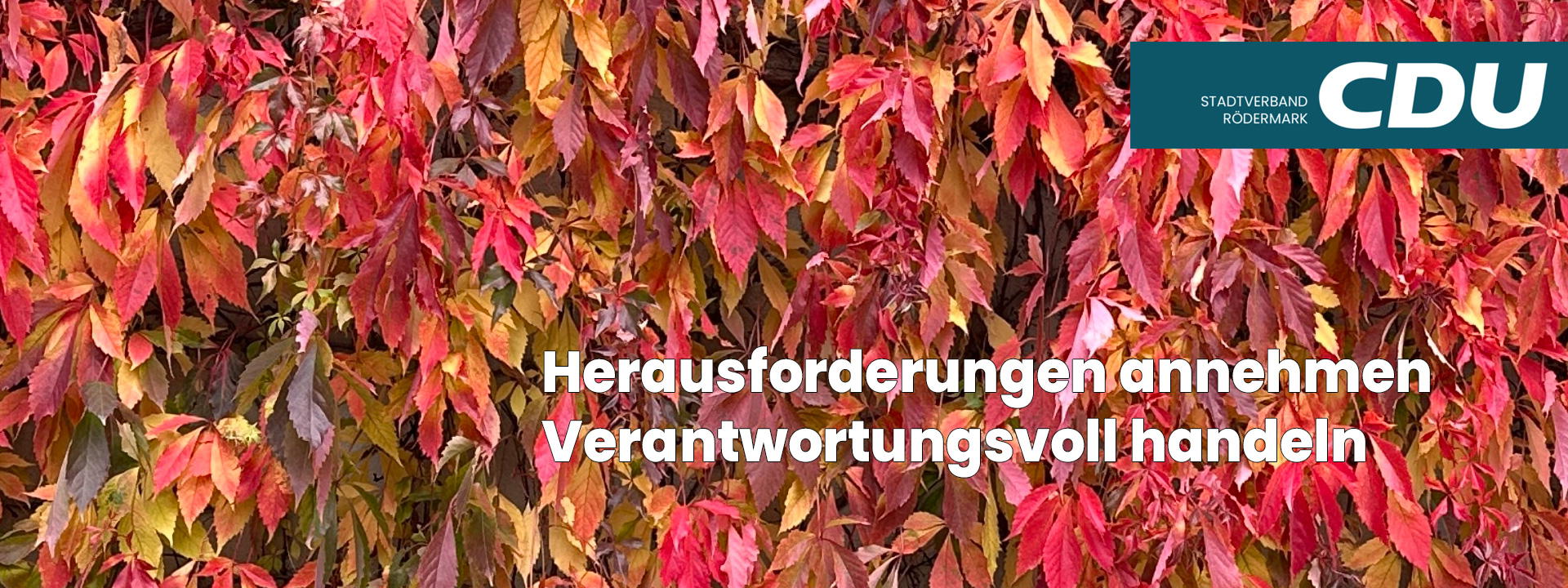 in Rödermark lohnt es sich zu leben! Die CDU gestaltet aktiv unsere Stadt mit. So sind wir die stärkste Fraktion im Stadtparlament, stellen den Bürgermeister sowie den Stadtverordnetenvorsteher und sind im Kreistag mit drei Abgeordneten vertreten, um die Interessen der Stadt wahrzunehmen.