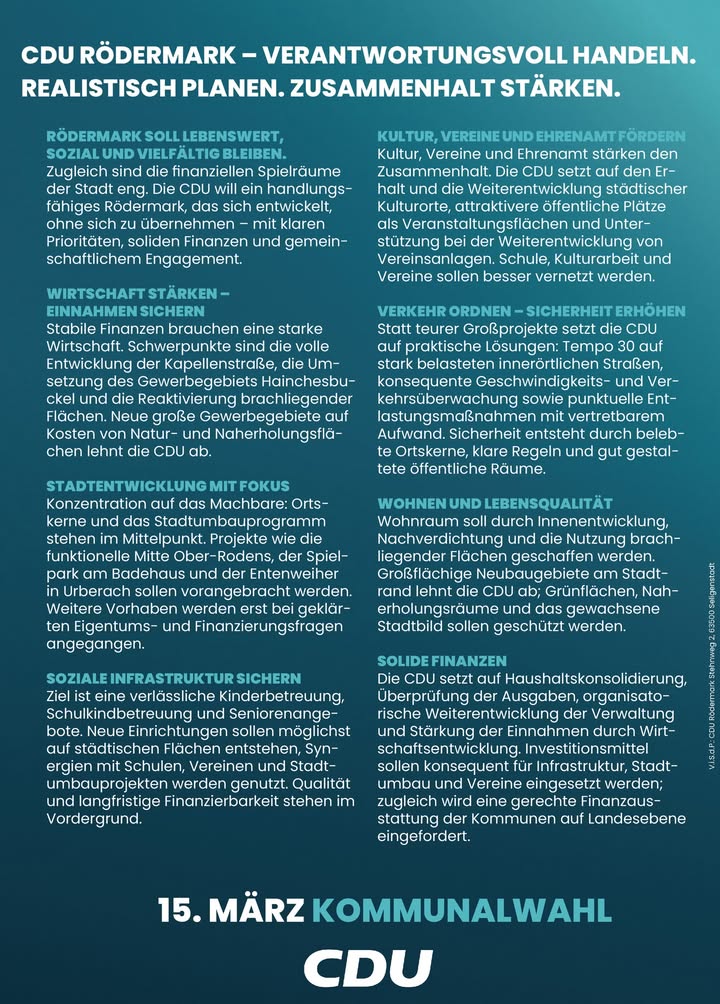 CDU Rödermark stellt Liste für Kommunalwahl 2026 auf – Viel getan – viel zu tun