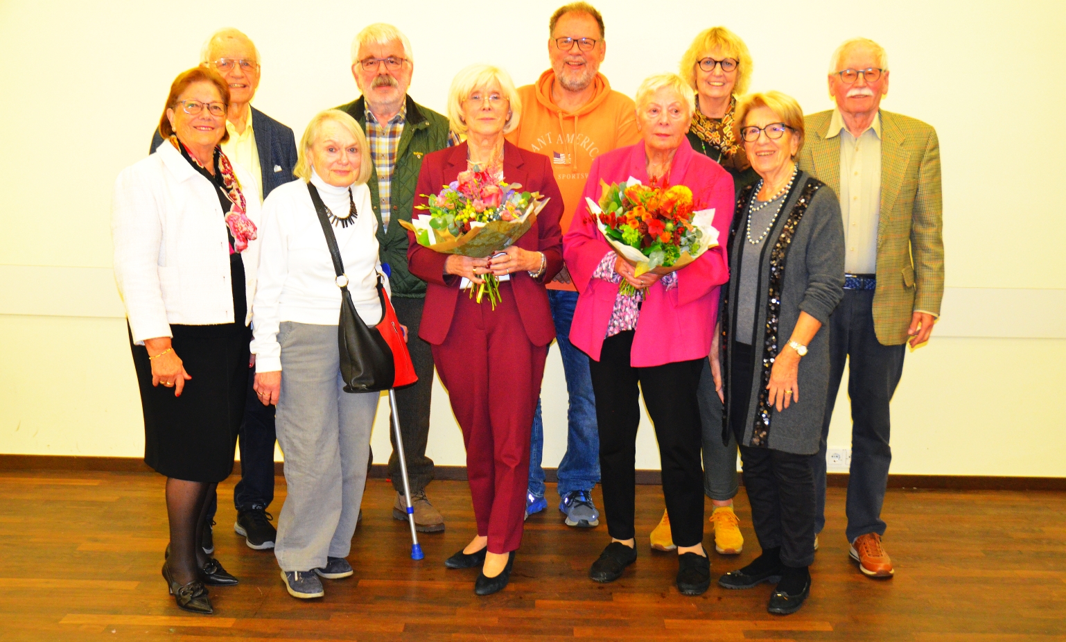 Bild unten v.l.n.r.: Anna-Monika Gierszewski,Ingrid Bögershausen, Elisabeth Ball (Vorsitzende Kreisverband Offenbach-Land), Monika Bärwald-Schneiders, Herta Bügler