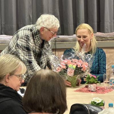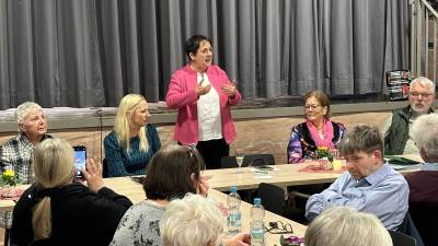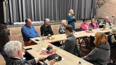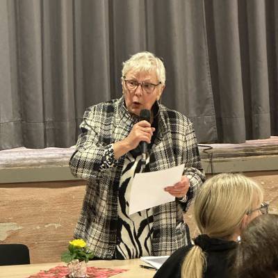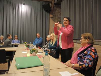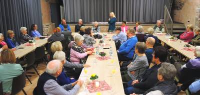 Ein oft und gern gesehener Gast war die Bundestagsabgeordnete Patricia Lips. Sie gab eine kurze Schilderung der Situation in Berlin vor der Bundestagswahl, bevor sie das Mikrofon an die Ministerin übergab. Diese ging in freier Rede auf ihre Schwerpunkte ein: Pflege im Alter, Einsamkeit und Auseinandersetzung mit der Lebenswirklichkeit. Ergänzend empfahl sie den Internet-Auftritt ihres Ministeriums. Dort könne man viel über die z.T. neu ausgerichteten Hilfestellungen für Notsituationen erfahren. Schon bald leitete sie über zu Fragen aus dem Kreis der Anwesenden, wobei es zu einer lebhaften Beteiligung kam. Auch für Einzelgespräche war sie kurz vor ihrem Abschied noch aufgeschlossen.